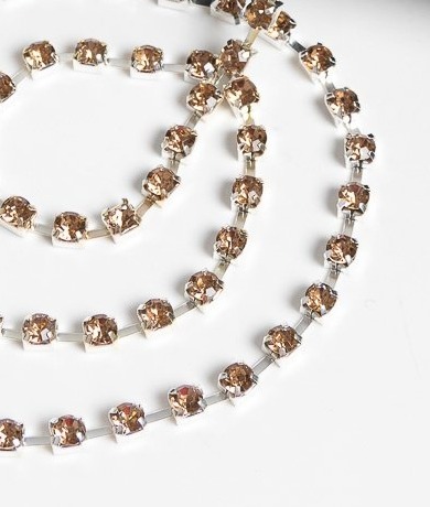 Цепь со стразами, ss16, ш. 4 мм, золото в серебряной оправе