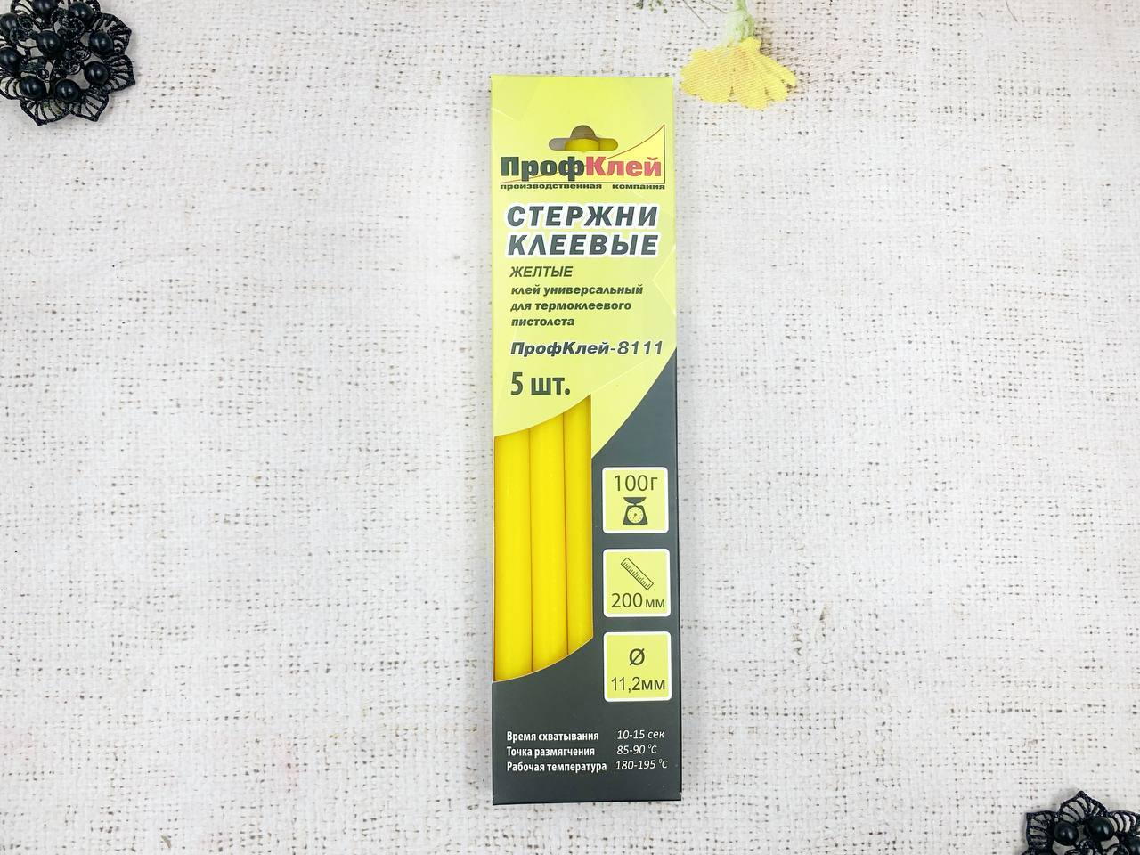 Клеевые стержни, d 11,2 мм, L 20 см, жёлтый